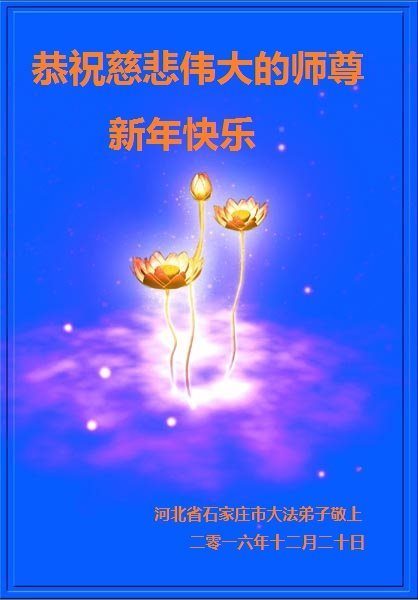 【明慧网二零一六年十二月三十日】 河北省石家庄大法弟子一家恭祝伟大的师尊新年快乐!