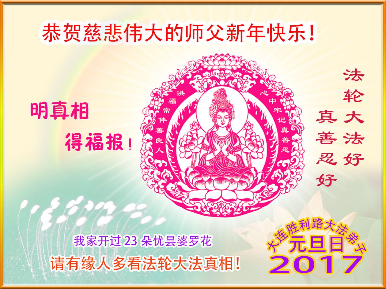 【明慧网二零一六年十二月三十日】 辽宁大连大法弟子恭祝慈悲伟大的师父新年快乐!