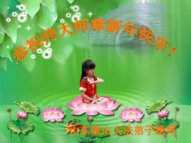 山东梁山三名大法弟子恭祝师尊新年快乐!