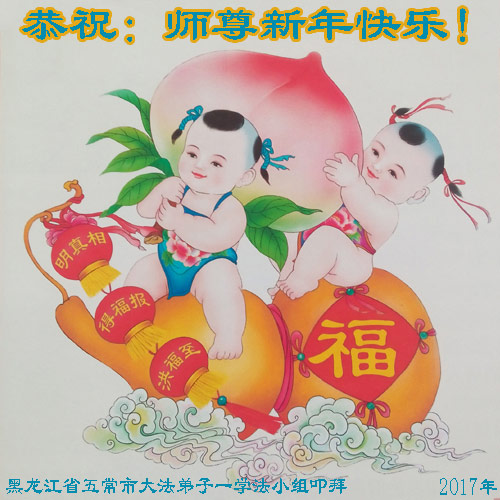 黑龙江省哈尔滨市五常市大法弟子一学法小组恭祝师尊新年快乐!