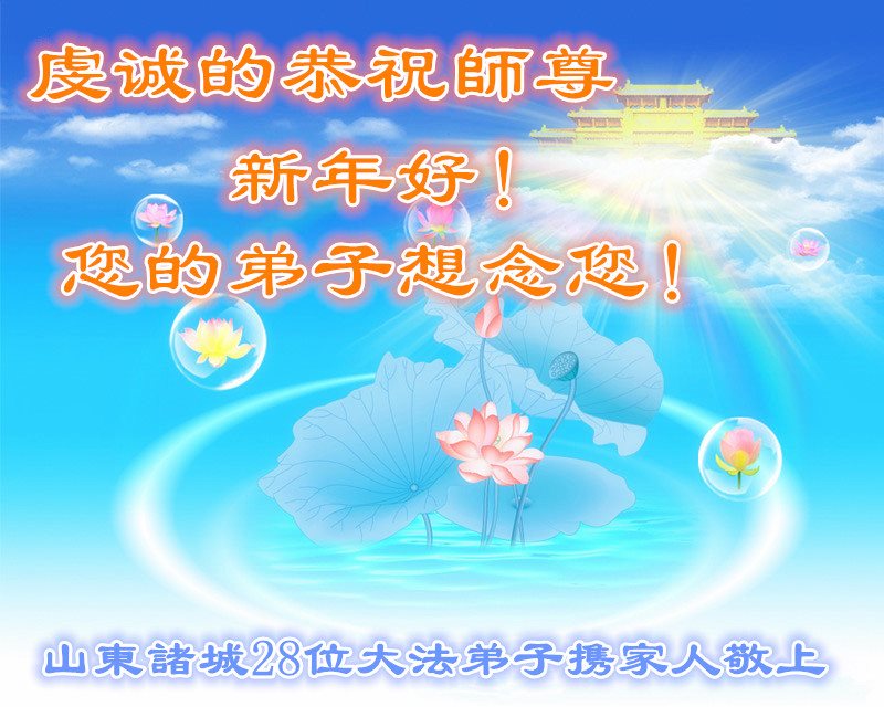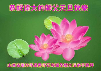 【明慧网二零一六年十二月三十一日】 山东省潍坊市诸城市两人学法小组大法弟子跪拜师尊,虔诚的恭祝尊敬师父:新年好!