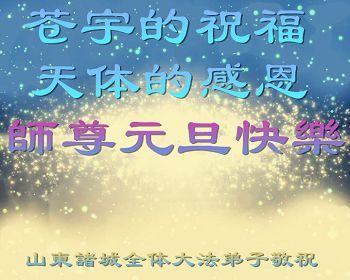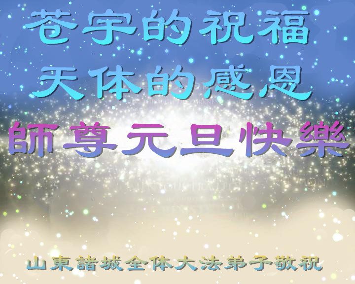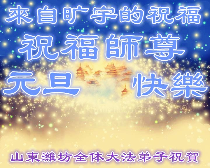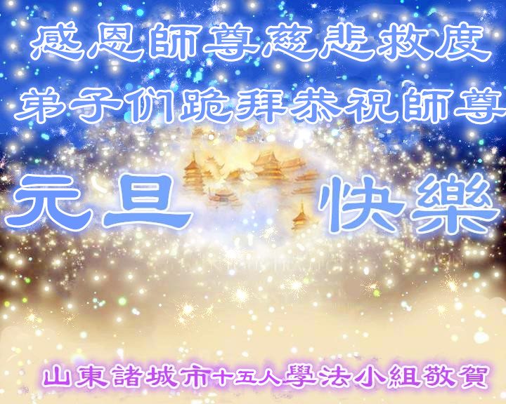 弟子在新的一年里,净心学法同化法。扎扎实实修心性,做好三件事,完成使命,随师尊同回天堂! 谢师尊洪恩 叩首 合十 2016 年12月14日 山东潍坊诸城全体大法弟子敬祝师尊元旦快乐!