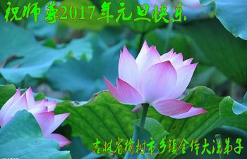 师父:您好!弟子祝您新年愉快!过去的一年里,您为弟子操碎了心,我们每精進一步都离不开您的慈悲呵护,我们能成为您的弟子,感到无比的荣耀,是您给了我们快乐!给了我们健康,给了我们幸福,给了我们一切。在一七年里,我们听师父的话,做好“三件事”,学好法,实修自己,多救人。在助师正法中精進再精進!让师父放心,兑现来时洪愿。 三省五市三乡村一家族大法弟子恭祝慈悲伟大的师尊新年好!新年快乐!