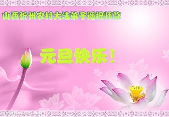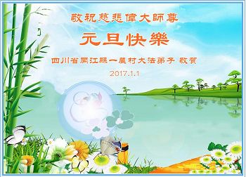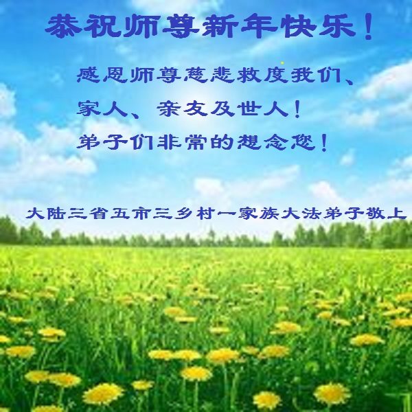河北省保定市博野县农村大法弟子和女儿恭祝师父新年快乐!谢谢慈悲伟大的师父,您辛苦了。 四川德阳农村大法弟子恭祝师父新年快乐!