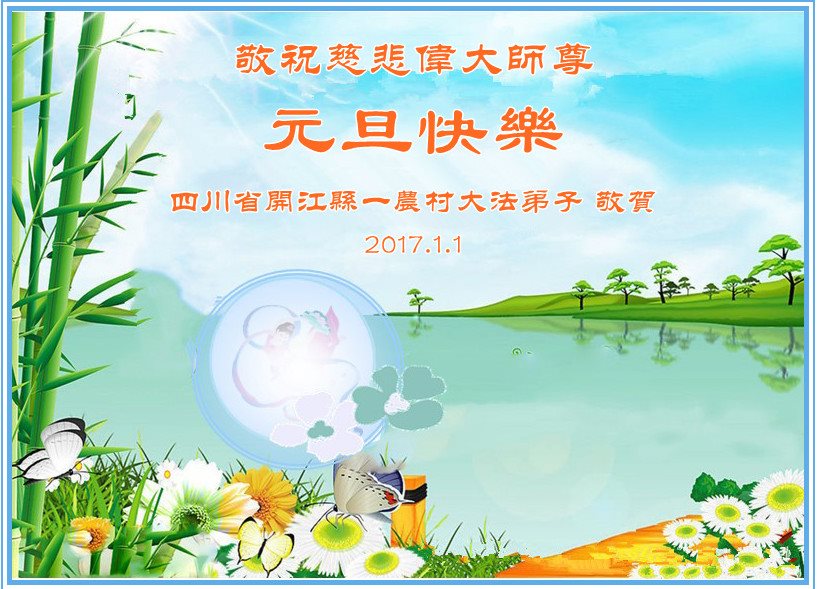 在新的一年里,我们一定勇猛精進,多救人。 四川省达州市开江县农村一老年大法弟子恭祝慈悲伟大的恩师元旦快乐!