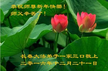吉林省长春大法弟子一家三口恭祝师尊新年快乐!