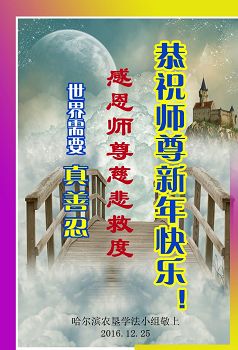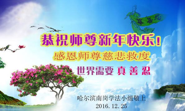 黑龙江省哈尔滨南岗学法小组大法弟子恭祝师尊新年快乐!