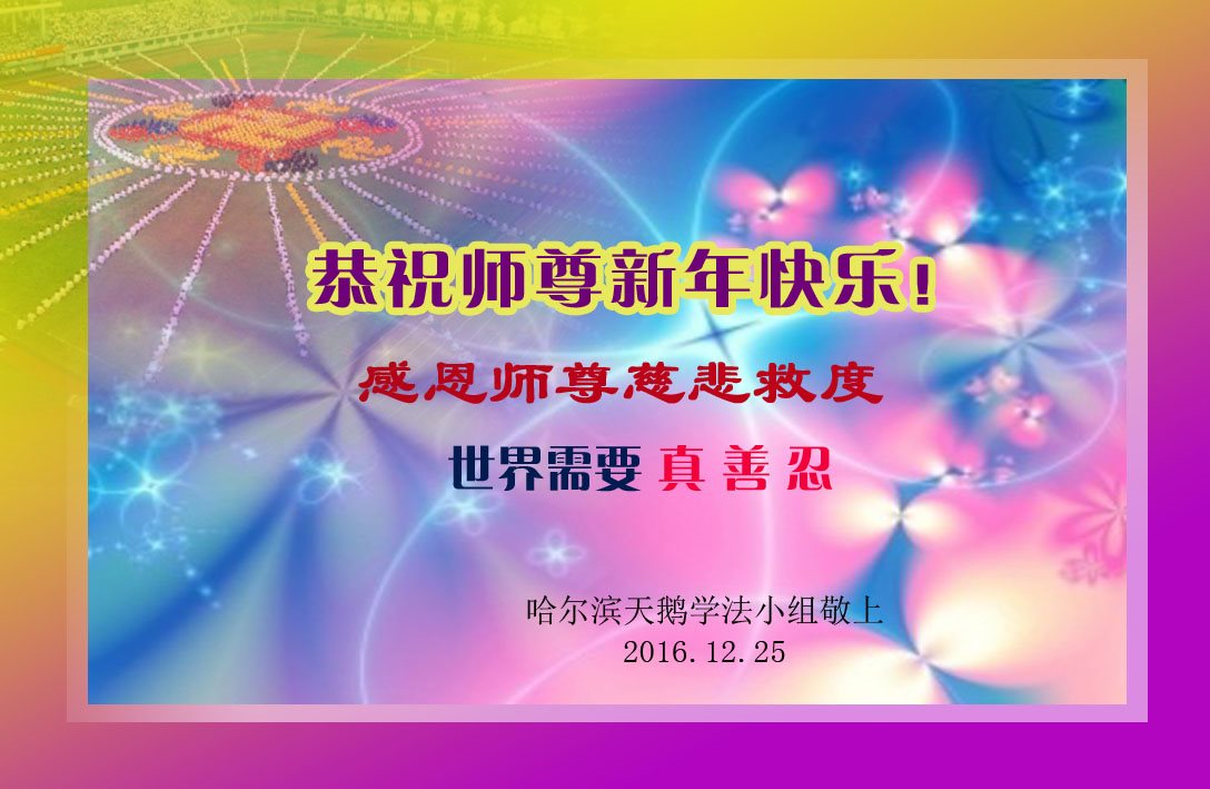 黑龙江省哈尔滨天鹅学法小组大法弟子恭祝师尊新年快乐!