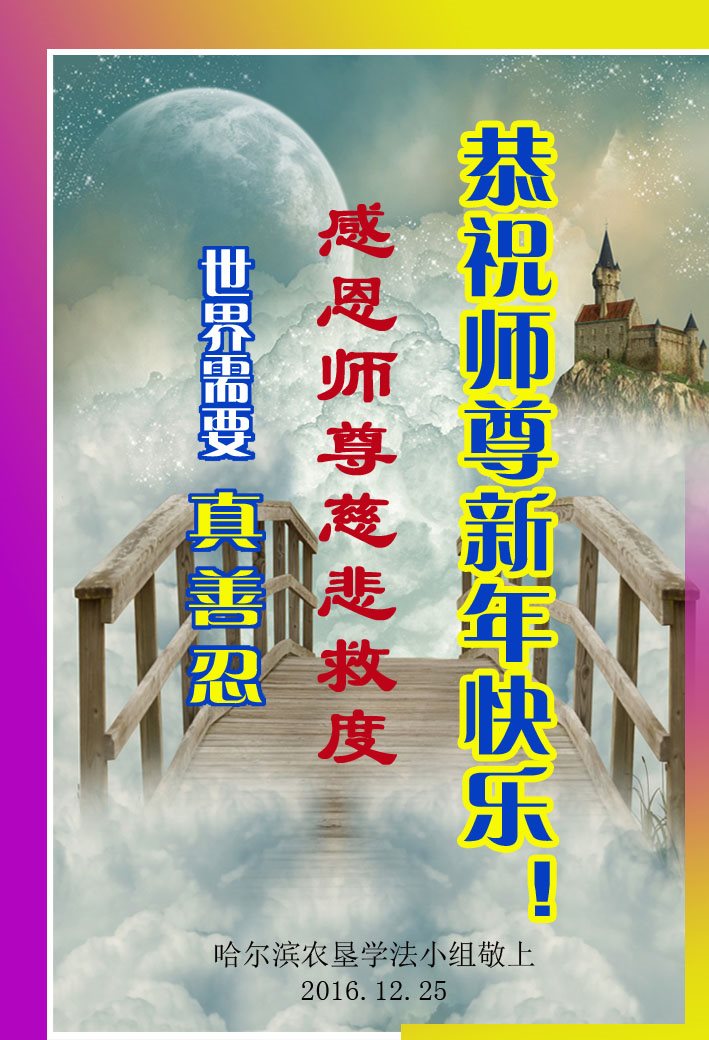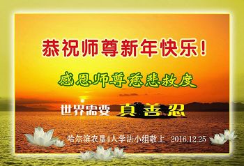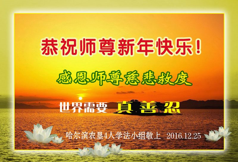 【明慧网二零一六年十二月三十一日】 黑龙江省哈尔滨市五常市大法弟子一老年学法小组恭祝师尊新年快乐!