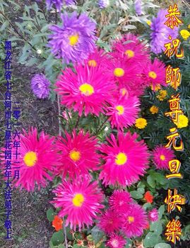 四川巴中市平昌县一学法小组的全体大法弟子以崇高的敬意向慈悲伟大的师父叩拜!师父您好!师父辛苦了!恭祝师父元旦快乐! 吉林省白山市一老年学法小组全体弟子向师父叩首!恭敬师父新年快乐!