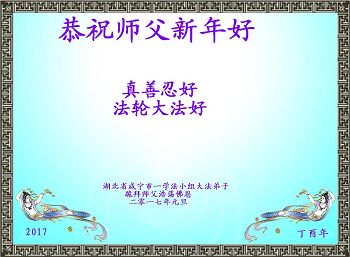 恭祝慈悲伟大的师尊新年快乐!师尊您辛苦了!弟子一定听师父的话,精進实修,努力做好“三件事”以报师恩。 湖北省咸宁市咸安区大法弟子恭祝师父新年好!