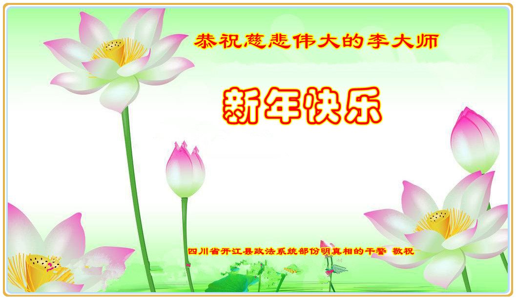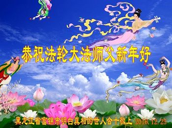 感谢法轮大法给我家带来的福祉:家里的老人,孩子和我都多次得到李大师的保护,化险为夷,遇难呈祥。非常感谢李洪志师父,恭祝李大师新年快乐! 黑龙江省富锦市明白真相世人恭祝法轮大法师父新年好!