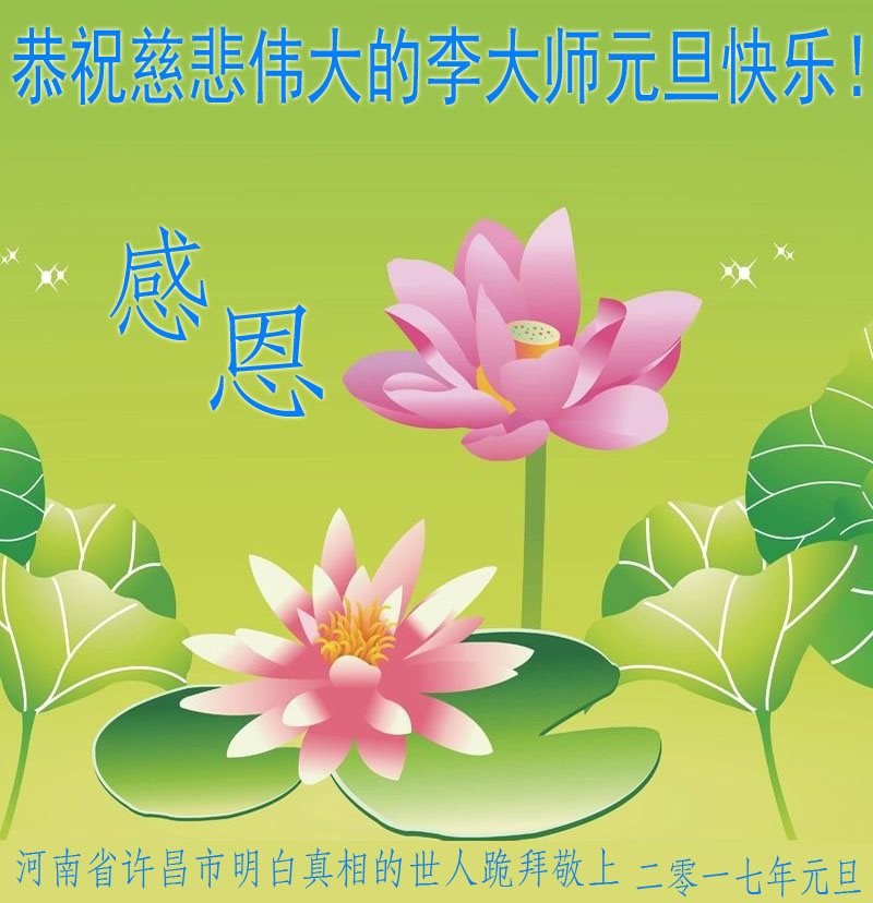 恭祝慈悲的大法师父新年好! 江苏南京明真相的世人恭贺李大师元旦快乐!
