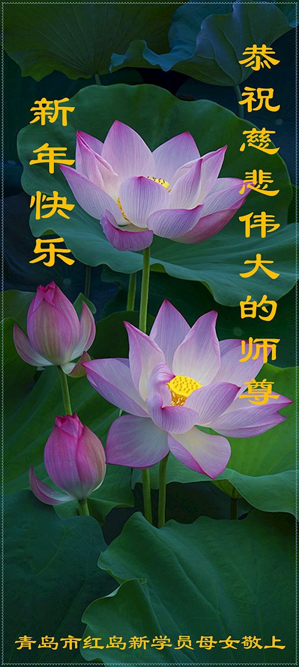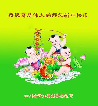 师尊辛苦了,谢谢师尊!我修炼法轮功没几年,但是我在师尊呵护下感觉自己不再是新学员了,我希望自己时刻完全融入法中,真正做到正念正行,坚如磐石,纯纯净净一心把自己一切都交给师尊。抓紧时间做好三件事,做合格弟子和师父回家。 山东省青岛新学员恭祝师尊新年快乐!