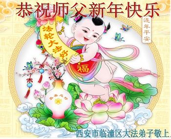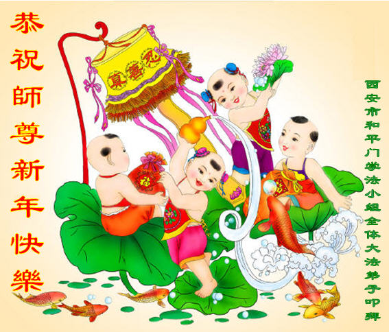 陕西西安南郊电子城大法弟子恭祝慈悲伟大的师父新年快乐!