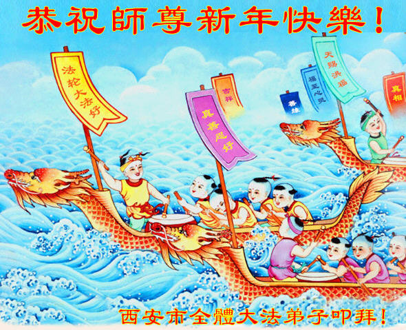 大陆大法弟子盼望师尊回中土的一天早日来到! 陕西省西安市大法弟子恭祝师尊元旦好!