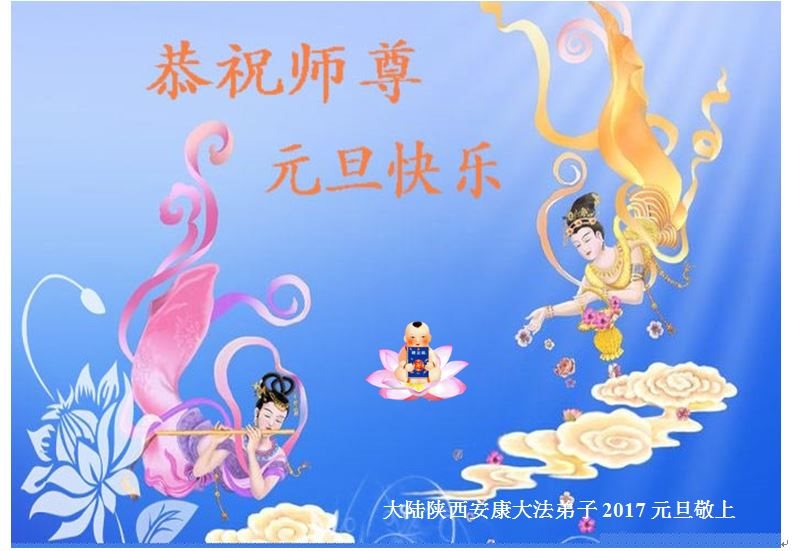 新年临近,恭祝慈悲伟大的师尊新年好!我们一定走好最后的路,信师信法,修圆满,跟师父回家! 陕西省西安一大法弟子祝师父元旦快乐!师父您辛苦了!