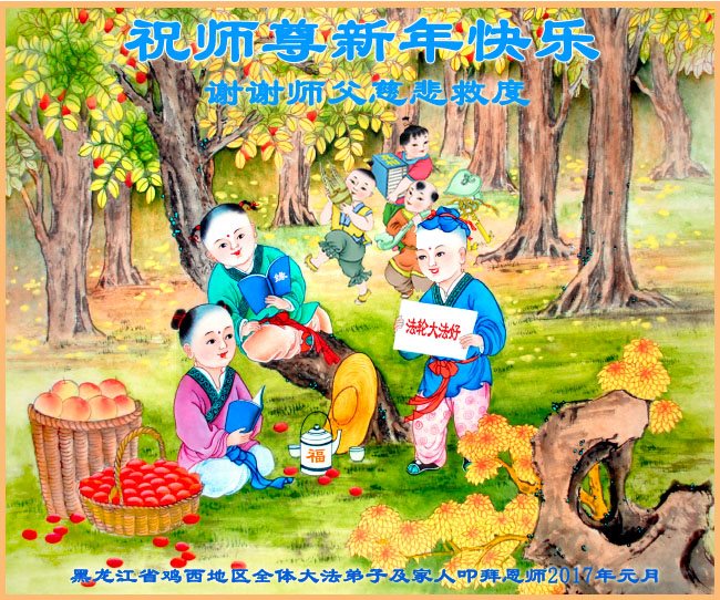 新的一年即将开始了,2017年,我要把没有做好的地方补回来,不愧做师尊的弟子,用有限的时间把师尊所要的做好做正,让师尊多一份欣慰,少一分操劳。愿师尊笑口常开。 黑龙江省鸡西市大法弟子三代人学法小组祝伟大的师尊新年快乐!