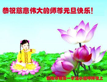 恭祝慈悲伟大的师尊元旦快乐! 四川省德阳市城南一大法弟子全家叩拜敬上 山东省烟台市福山区一学法小组恭祝慈悲伟大的师尊新年好!