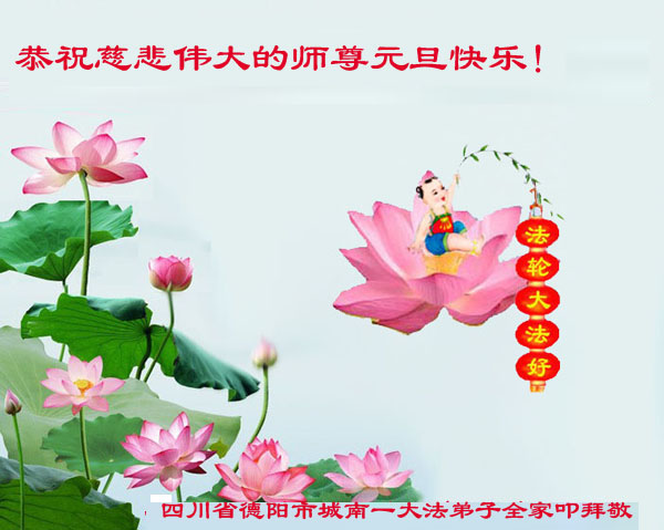 四川省德阳市城南一大法弟子全家恭祝慈悲伟大的师尊元旦快乐!
