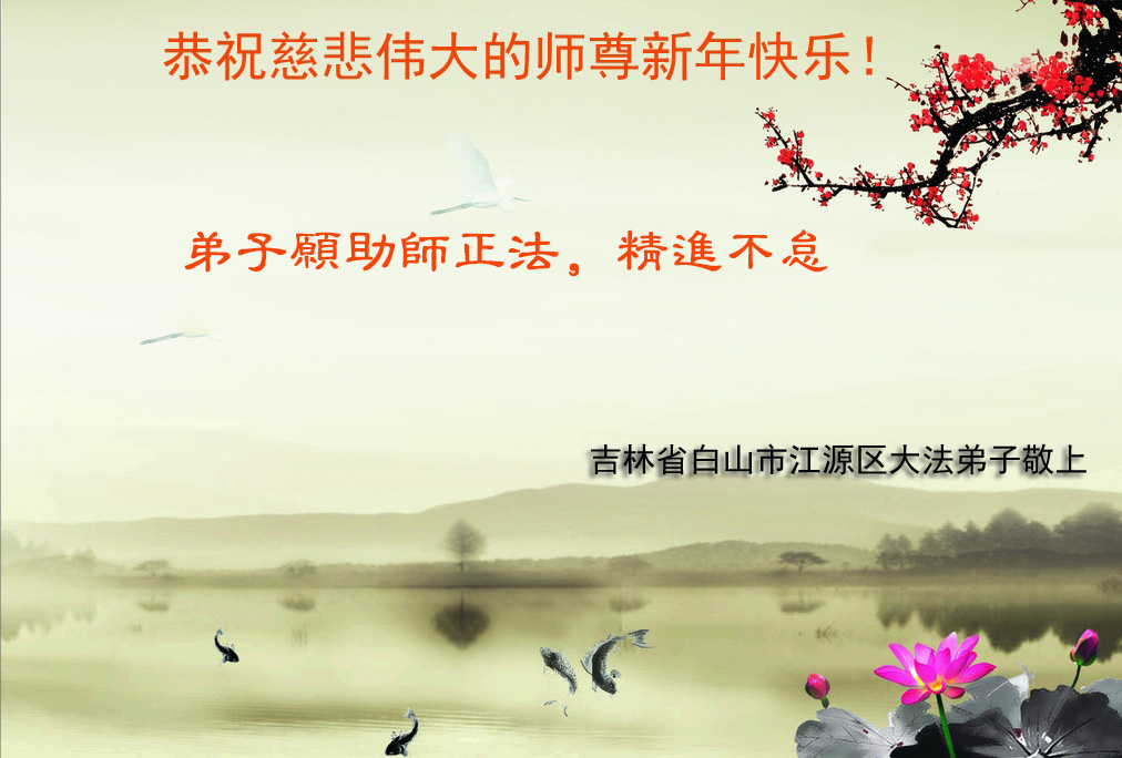 恭祝慈悲伟大的师尊元旦快乐! 四川省德阳市城南一大法弟子全家叩拜敬上 吉林省白山市江源区大法弟子恭祝师父新年快乐!