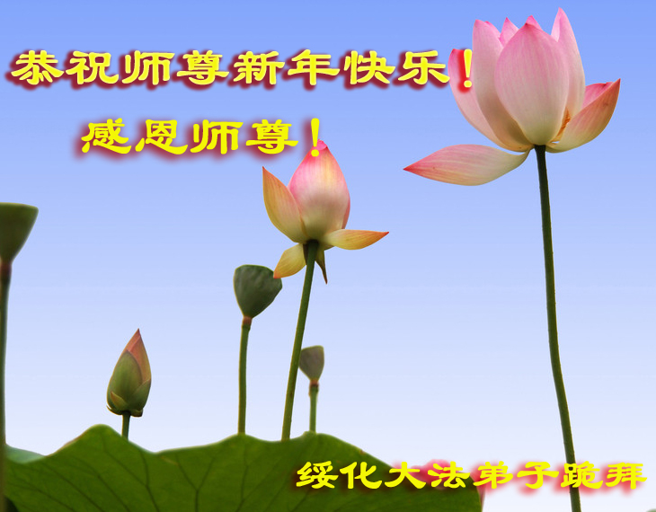 山东省东营市利津县全体大法弟子:叩拜师尊!叩谢师尊慈悲苦度!恭祝师尊元旦快乐! 黑龙江省绥化全体大法弟子恭祝慈悲伟大的师尊新年好!