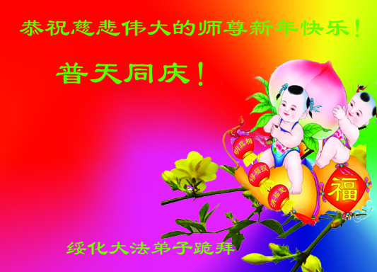 师父新年好! 师父您辛苦了!我们想念您,我们一定做好三件事,不让师父操心,再次叩拜师父,恭祝师父过年好! 河北省石家庄正定一学法小组大法弟子敬上 河北省保定全体大法弟子恭祝师尊新年快乐!