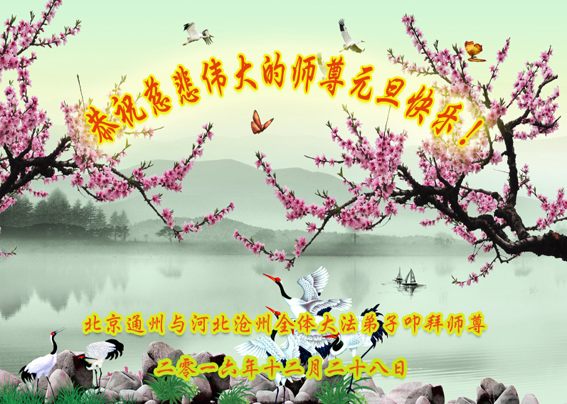 【明慧网二零一六年十二月三十一日】 北京通州与河北沧州全体大法弟子恭祝慈悲伟大的师尊元旦快乐!