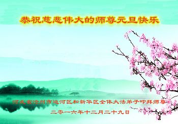 河北省沧州市新华区和运河区全体大法弟子恭祝慈悲伟大的师尊元旦快乐!