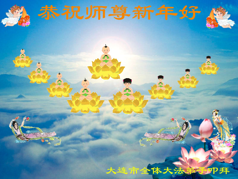 感谢师尊慈悲苦度 感谢师尊佛恩浩荡 师尊辛苦了 辽宁省大连市全体大法弟子恭祝师尊新年好!