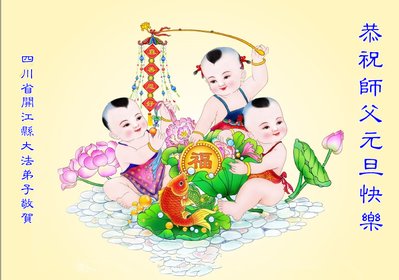 师父您好:千言万语表达不尽弟子对师父的感恩,弟子唯有听师父的话,做好三件事,精進实修以报师恩。 三位大法弟子恭祝师尊新年快乐! 黑龙江省哈尔滨市阿城区大法弟子:恭祝:慈悲伟大的师尊新年快乐!