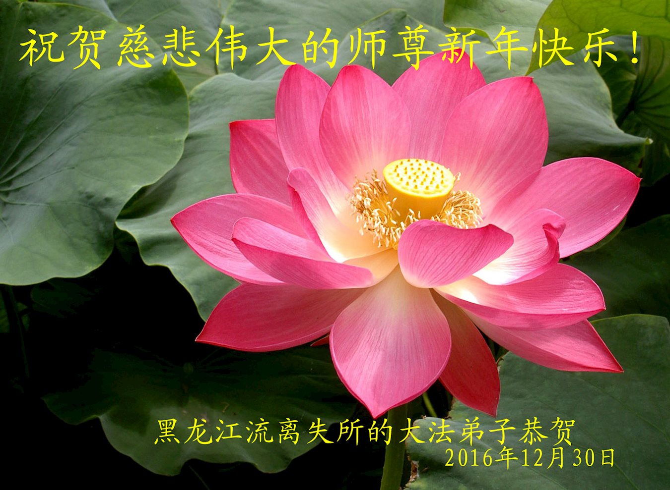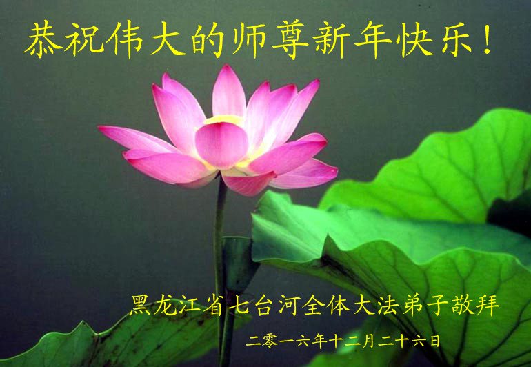 助师正法十八春 弟子时时感师恩 二零一七又来临 弟子一定更精進 大陆大法弟子叩拜师尊 2016年12月30日 黑龙江鹤北林业局全体大法弟子恭祝慈悲伟大的师尊新年快乐!