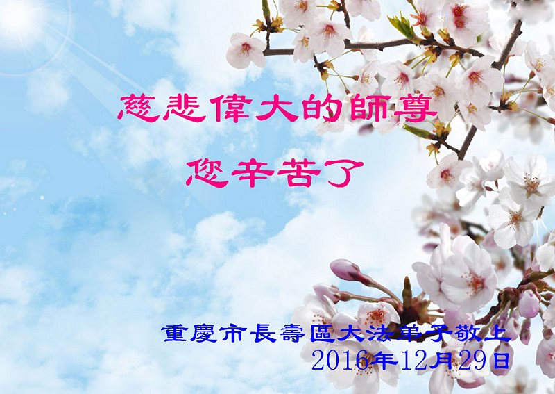 弟子一定听师父的话,修心向内找,做好三件事,勇猛精進,圆满随师还。 重庆市长寿区大法弟子恭祝慈悲伟大的师尊新年快乐!
