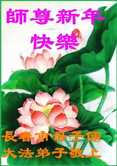 长春市鸣放宫炼功点一家母子俩大法弟子恭祝师尊新年快乐! 吉林省长春四个学法小组大法弟子恭祝师尊新年好!