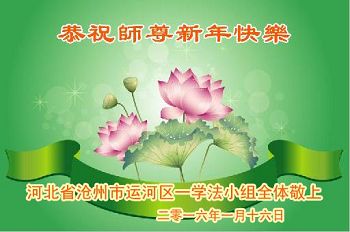 【明慧网二零一六年二月十日】 河北省沧州市运河区一学法小组全体大法弟子恭祝师尊新年快乐!