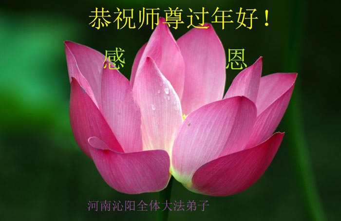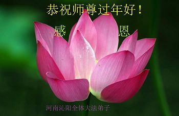 尊敬的师父过年好!我是沈阳农业系统的大法弟子,修炼20年,一路跟头把式的,是您不放弃我这个不争气的弟子,是您再造了我,什么语言都不能表达对师父您感恩的心情,恭祝师父新年快乐! 弟子一定做好三件事,做一个合格的大法弟子! 山东烟台龙口市大法弟子恭祝慈悲、伟大的师尊新年快乐!