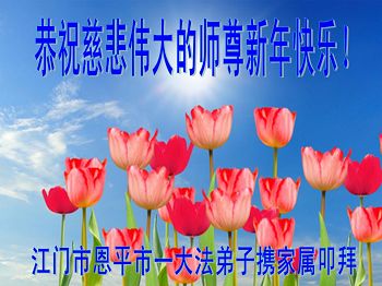 在这万年不遇的宝贵时光,我一定要勇猛精進,做好三件事,抓紧救人,做一个合格的正法时期的大法弟子! 不辜负师父对我的期盼! 广东省江门市恩平市全体大法弟子恭祝慈悲伟大的师尊新年快乐!