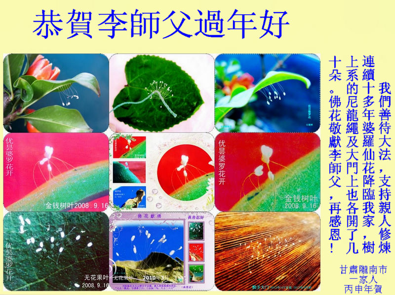 甘肃省泾川县全体大法弟子恭祝慈悲伟大的师尊新年快乐! 甘肃陇南大法弟子恭祝慈悲伟大的师父新年快乐!