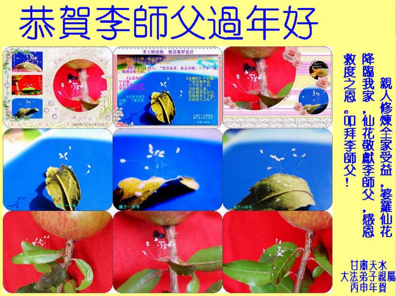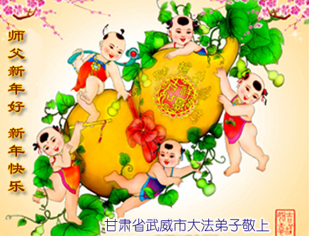 我们广州大法弟子叩拜慈悲伟大的师父!师父您辛苦了!我们恭祝您过年好!新春快乐! 甘肃武威全体大法弟子恭祝伟大的师尊过年好!新年快乐!