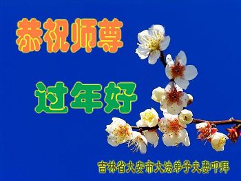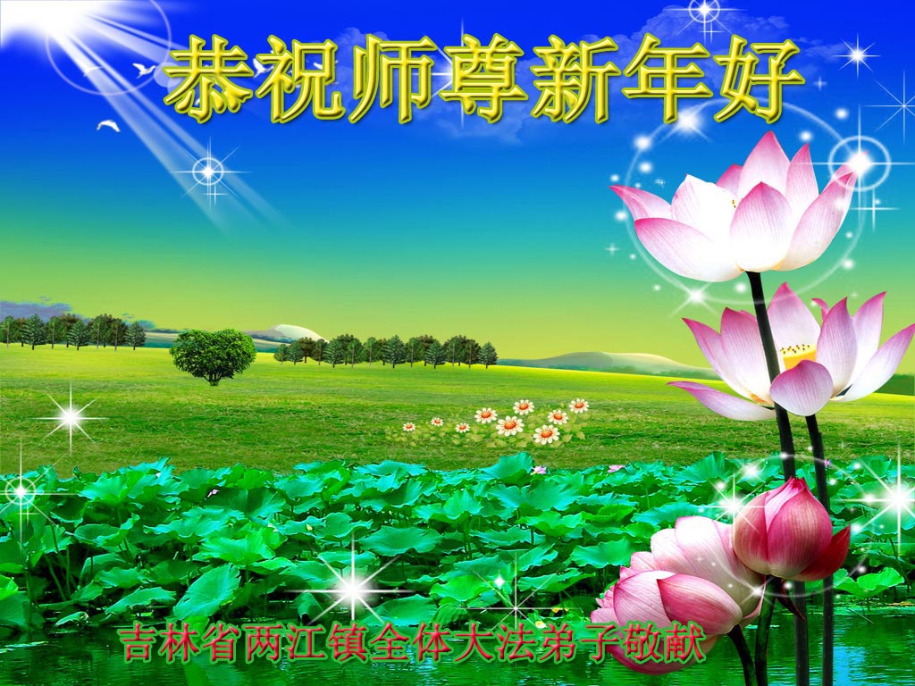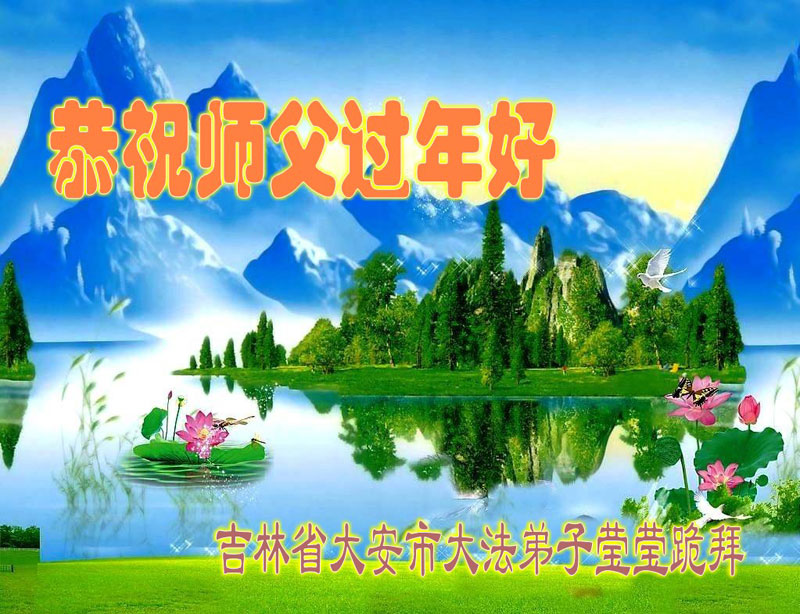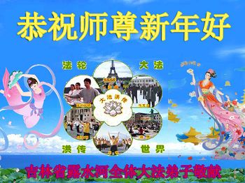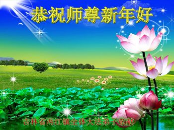 大陆吉林省一学法点大法弟子向师尊问好,祝师尊新年快乐!我们会按师尊说的做好三件事,谢谢师尊慈悲苦度。 大陆大法弟子 吉林省通化市一大法弟子全家及三个学法小组全体大法弟子恭祝慈悲伟大的师父过年好!