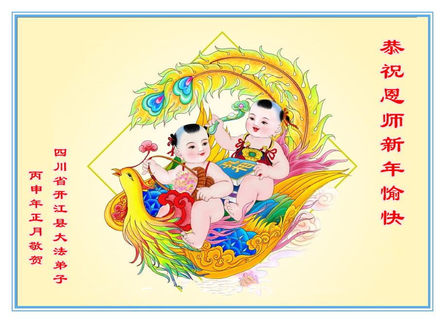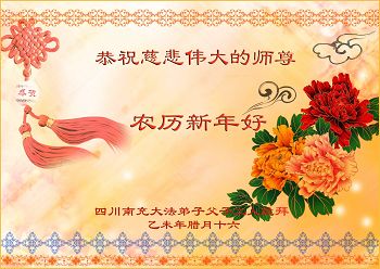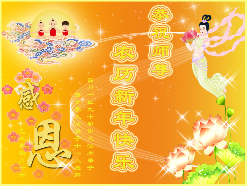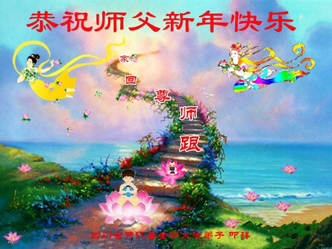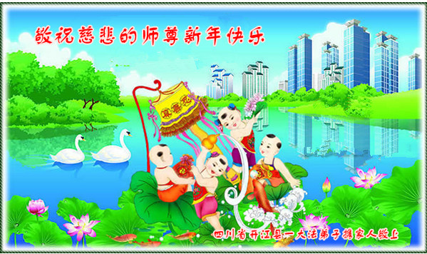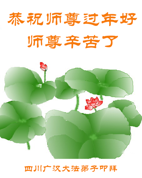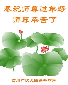 慈悲伟大的师父,新年好! 师父,您辛苦了! 师父,弟子让您操心了! 师父,我们深知猴年到,马月来,正法时期大法弟子修炼结束日为期渐近。为此,我们决心在新的一年里,按照师父的要求,多学法,学好法,做好三件事,相互配合好救众生,多救众生;精進,再精進;去掉执着,去掉根本的执着,去掉一切执着心,少给未来留下遗憾;让师父少一分操劳,多一份欣慰!向师父交上一份满意的答卷。 再次叩谢师尊! 山东枣庄大法弟子 四川省德阳市广汉市大法弟子恭祝伟大师尊过年好!
