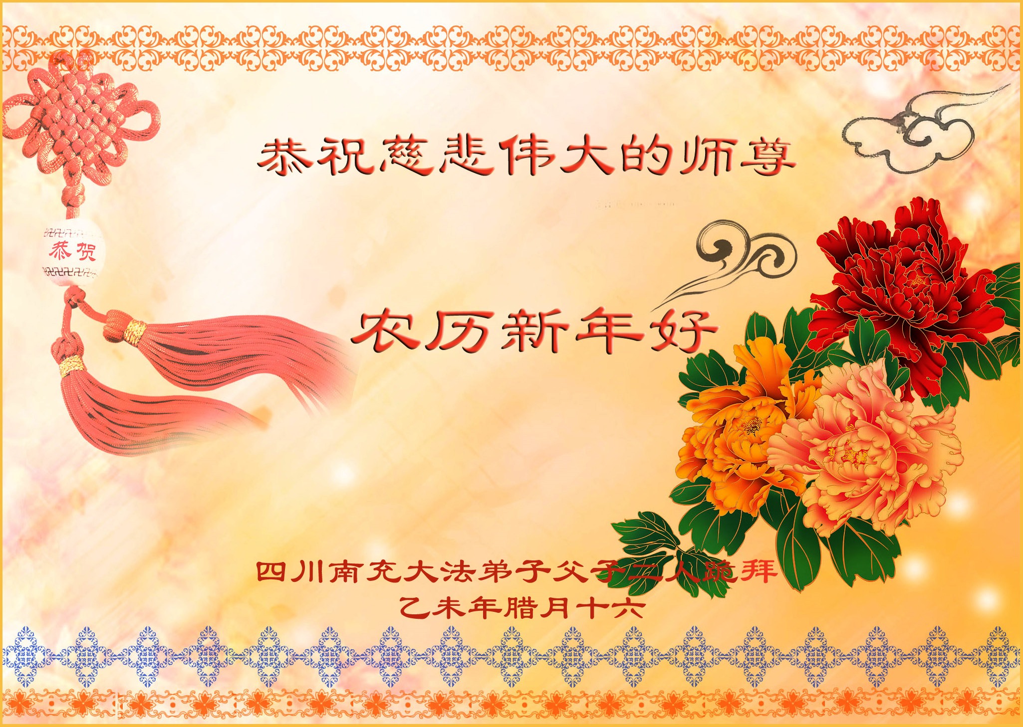 【明慧网二零一六年二月四日】 四川南充大法弟子父子恭祝慈悲伟大的师尊过年好!