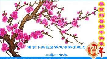 尊敬的师父:您好! 值此2016猴年新春佳节到来之际,我们全家大法弟子恭祝师父过年好!在新的一年里,我们要更加精進,救度众生。江苏昆山大法弟子2016年2月1日 江苏盐城一弟子恭祝师父过年好!