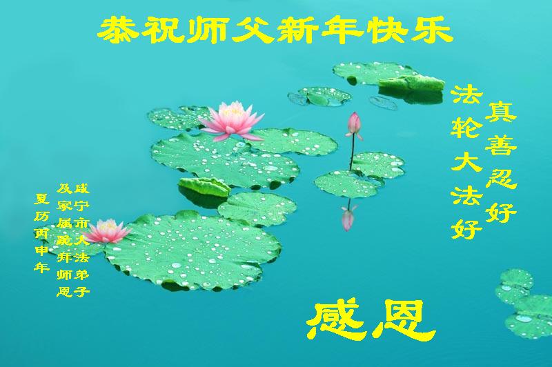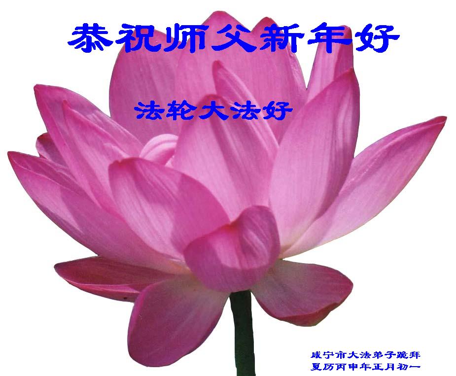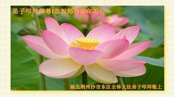 我们深知师父为弟子的圆满、为众生的得救操尽了心,我们无法用语言表达心中对师父的感激!千言万语汇成一句话:谢谢师父的慈悲救度!师父您好!您辛苦了!在新的一年里,正法形势会有更大的变化。我们会牢记师尊的教诲,更好的用心学法,坚定正念,慈悲救人,不辜负师父对弟子的期望。让师父多些欣慰,少一些操劳。我们盼望能早日见到慈悲伟大的师父! 湖北省咸宁市嘉鱼县大法弟子祝师父新年愉快!