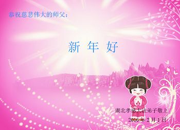 【明慧网二零一六年二月四日】 湖北省武昌一大法弟子全家恭祝伟大慈悲的师父新年快乐!