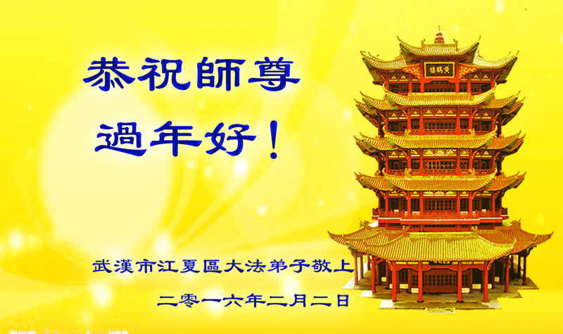 师父辛苦了!弟子们不负师恩,抓紧时间,修好自己,多救人!让师尊放心! 湖北武昌全体大法弟子恭贺 二零一六年二月 湖北武汉大法弟子恭祝慈悲伟大的师尊过年好!