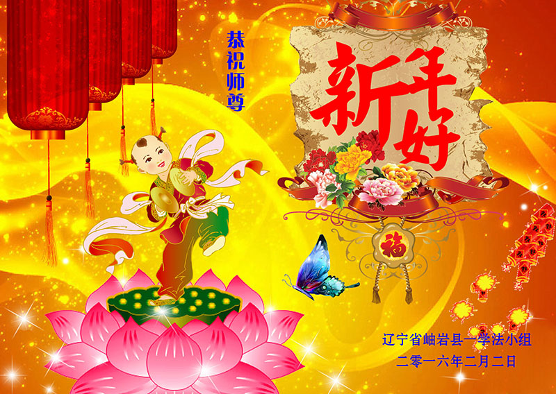 恭祝师父2016年新年快乐! 师父过年好!师父您辛苦了!弟子们一定多学法,做好三件事、和师父您回家。 辽宁抚顺某区七个学法小组大法弟子拜上 合十 辽宁省铁岭大法弟子恭祝师尊新年快乐!