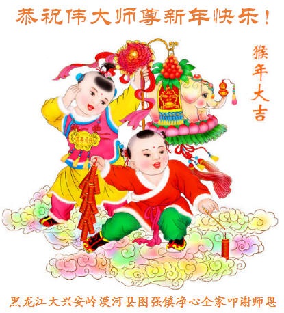 师父过年好!谢谢师父的慈悲救度。 黑龙江省大兴安岭加格达奇姐妹三位大法弟子及全家敬祝 黑龙江省大兴安岭加格达奇学法小组全体大法弟子给师父拜年!