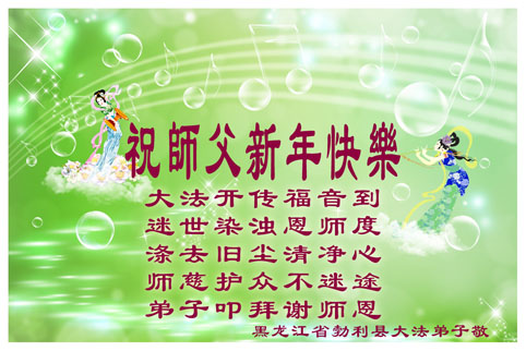 弟子们感恩师父的救度与呵护!弟子们心里清楚:如果不是师父为弟子巨大的承受,弟子们不会平稳的走到今天。千言万语表达不了对师尊的感激之情,唯有在今后有限的时间里学好法,去执着,多救人。叩拜师尊! 黑龙江省绥化市安达市大法弟子恭祝慈悲伟大的师尊新年快乐!