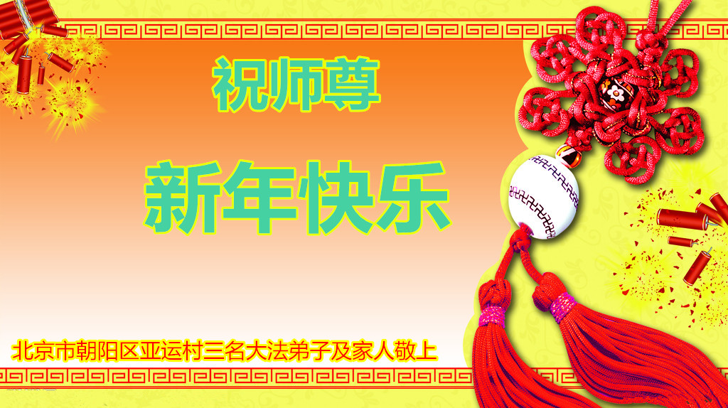 中国新年就要到了,回想起在师父呵护下走过的路,此时此刻心情难以平静。弟子们感恩师父为我们所做的一切!决心继续做好三件事,走好最后的路,做师父放心的弟子。 北京大法弟子恭祝师父新年快乐!